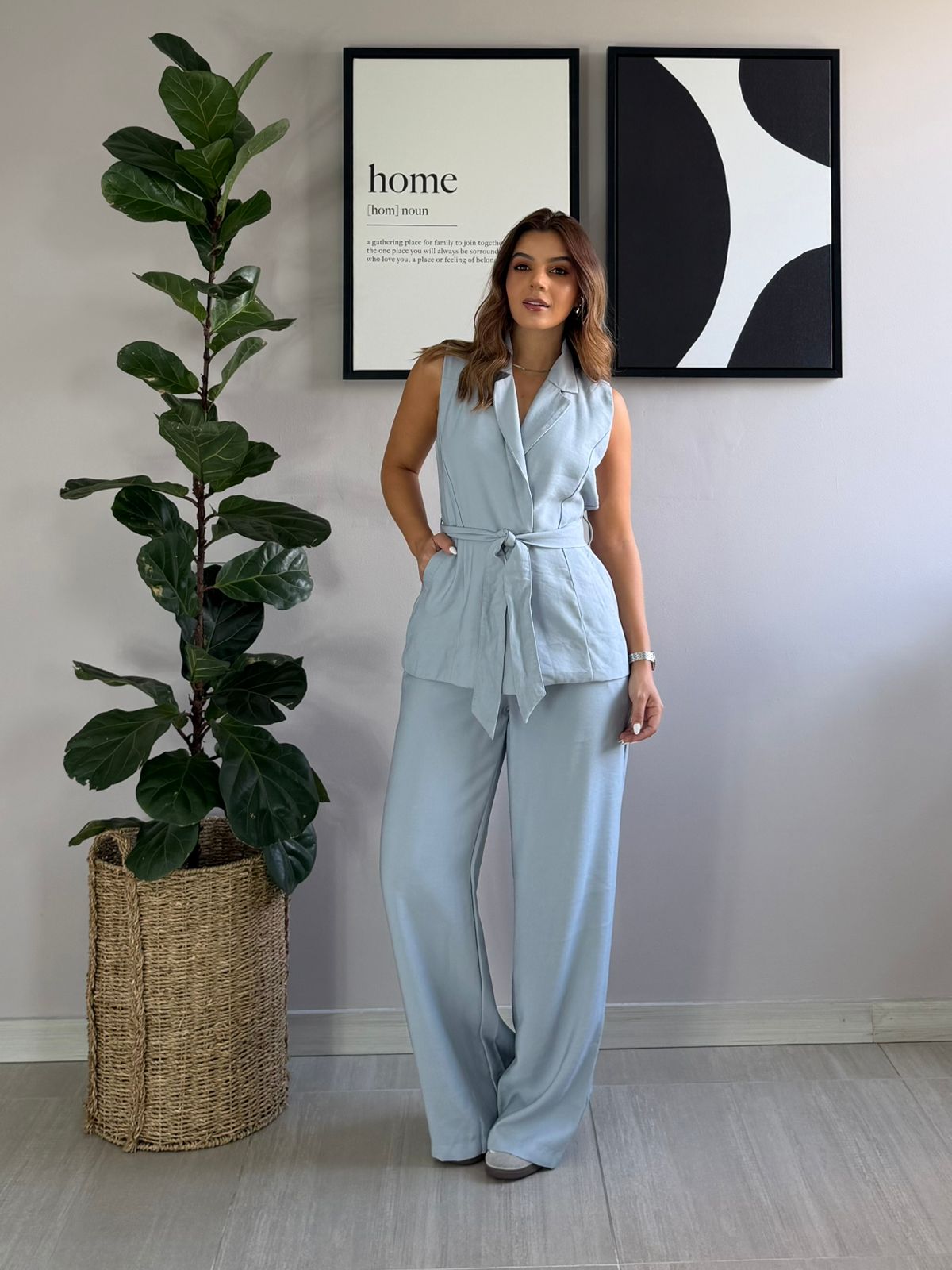 Beneficio funcional: Set de Blazer sin mangas y cinturón y pantalón tiro alto bota ancha, su cinturón es ajustable que define la cintura y estiliza la silueta, diseño sosfisticado para una ocasión formal, para la oficina o reuniones especiales.