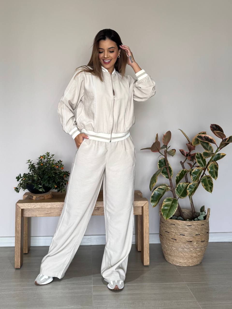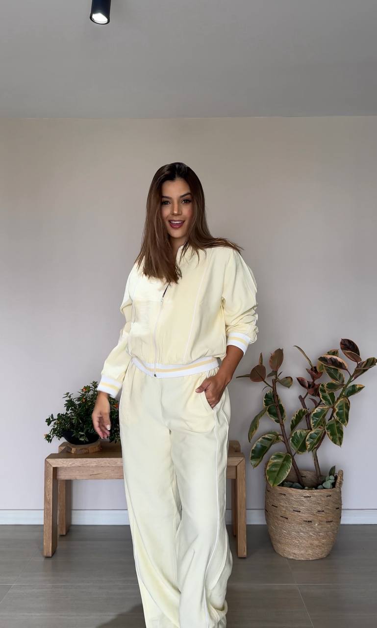 Conjunto pantalón y chaqueta deportivo- Tallas S- Colores: negro. amarillo- Beige- Tela: mykonos