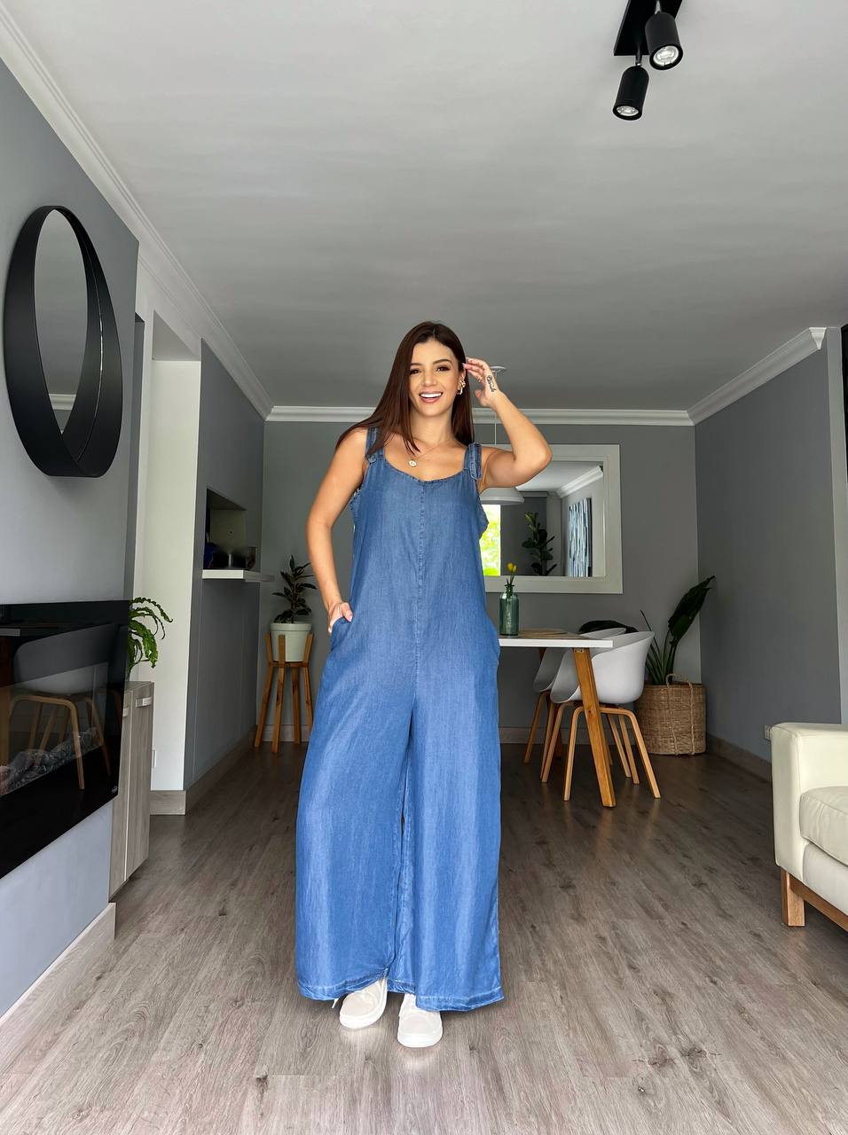 Enterizo largo con tiras graduables - Talla S - Tela: Tencel