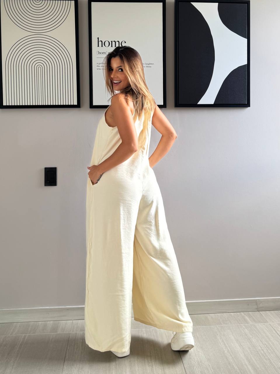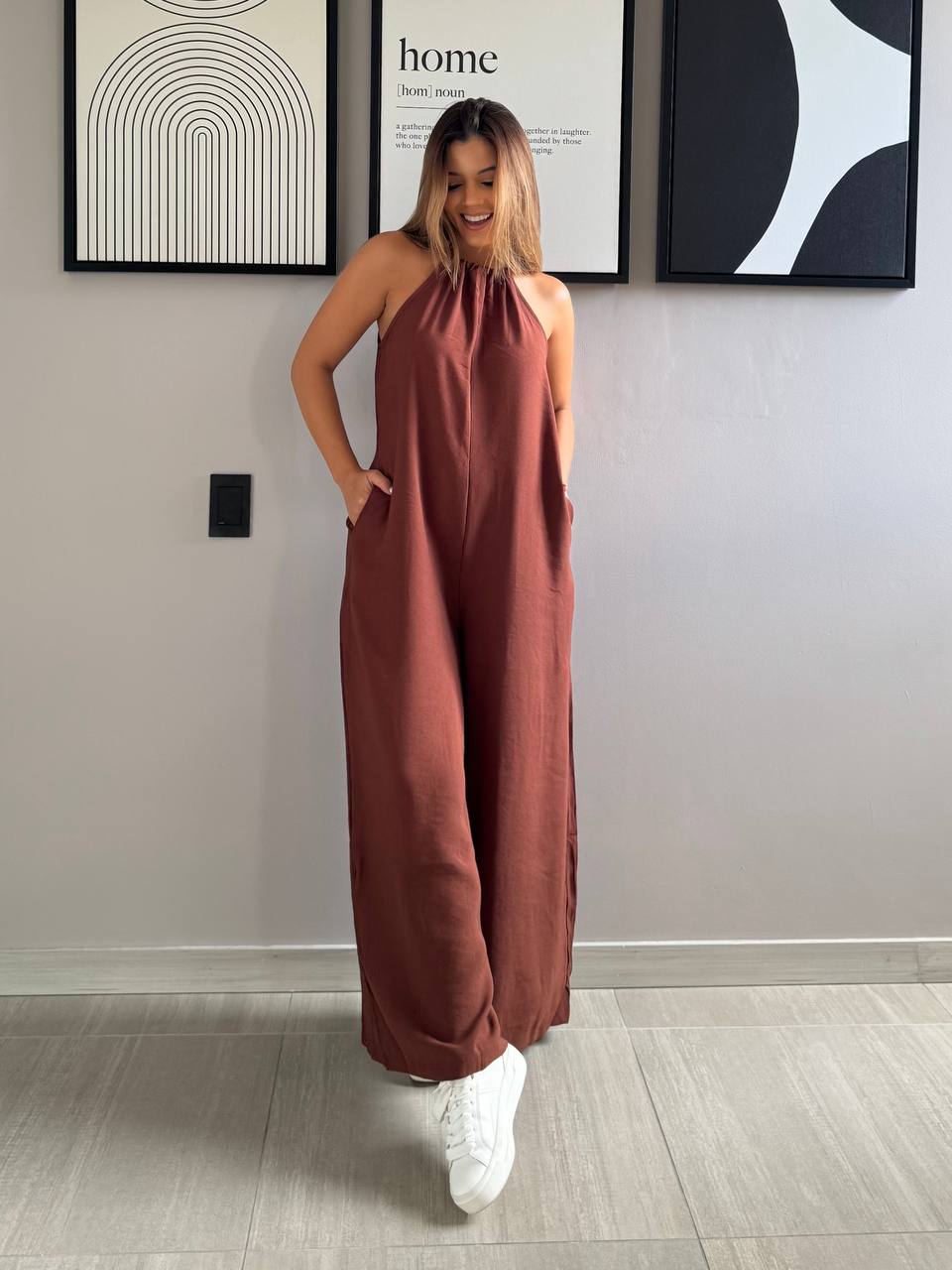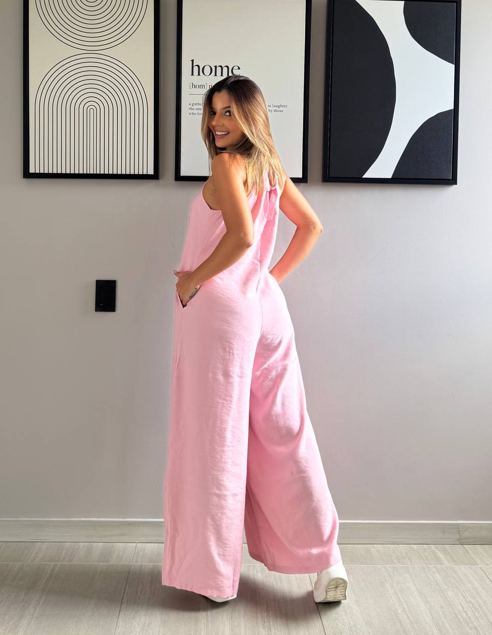 Enteirizo largo con cordón de amarre en el cuello- Tallas: S-M-L Color: Rosa- Amarillo- Azul- Café - Tela: Mykonos