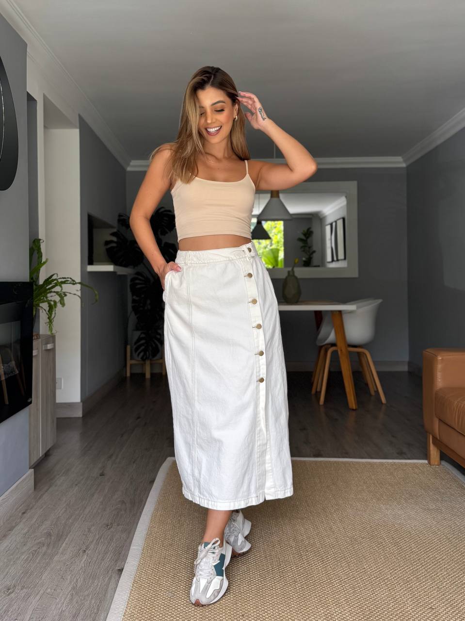 Falda larga con botones laterales- Talla 8- Tela: índigo