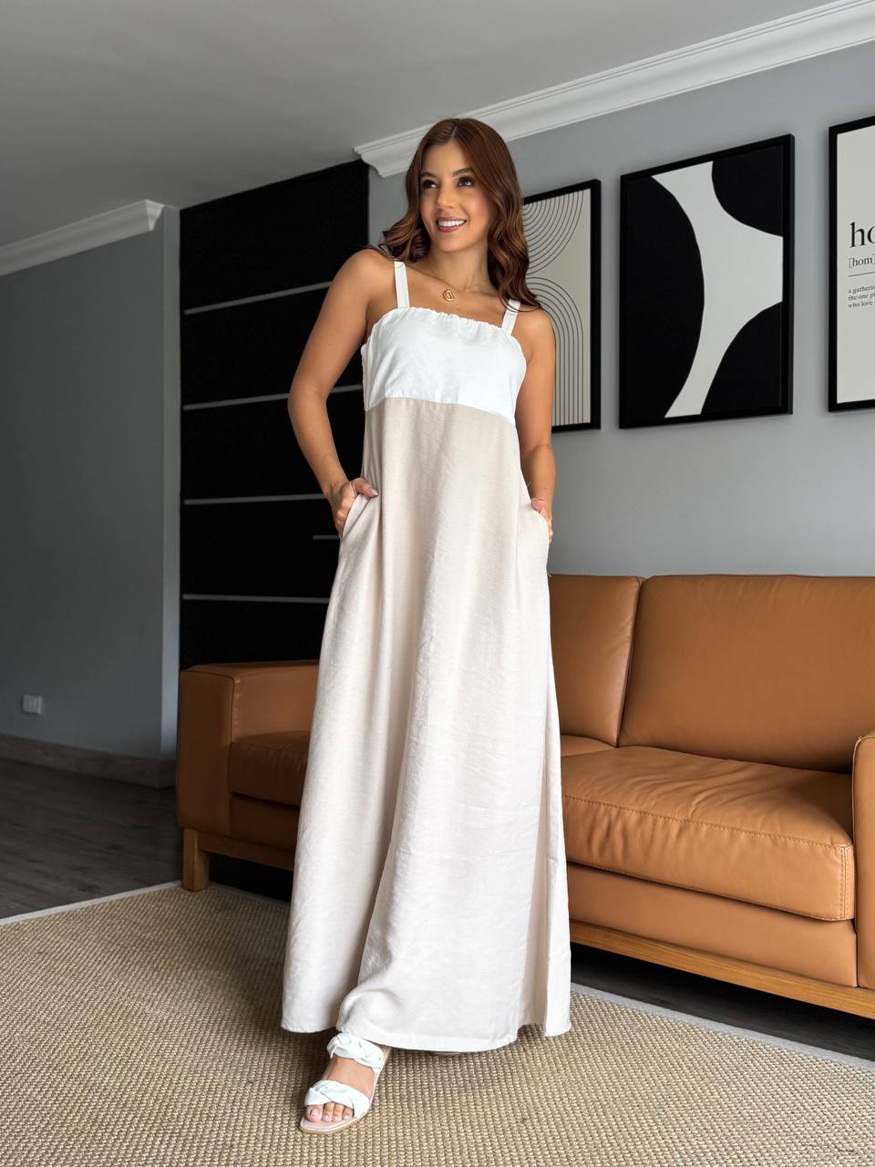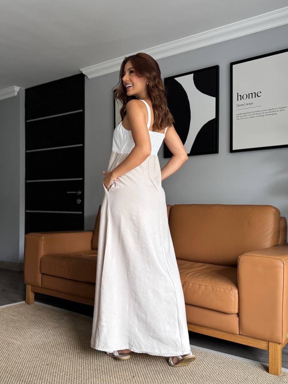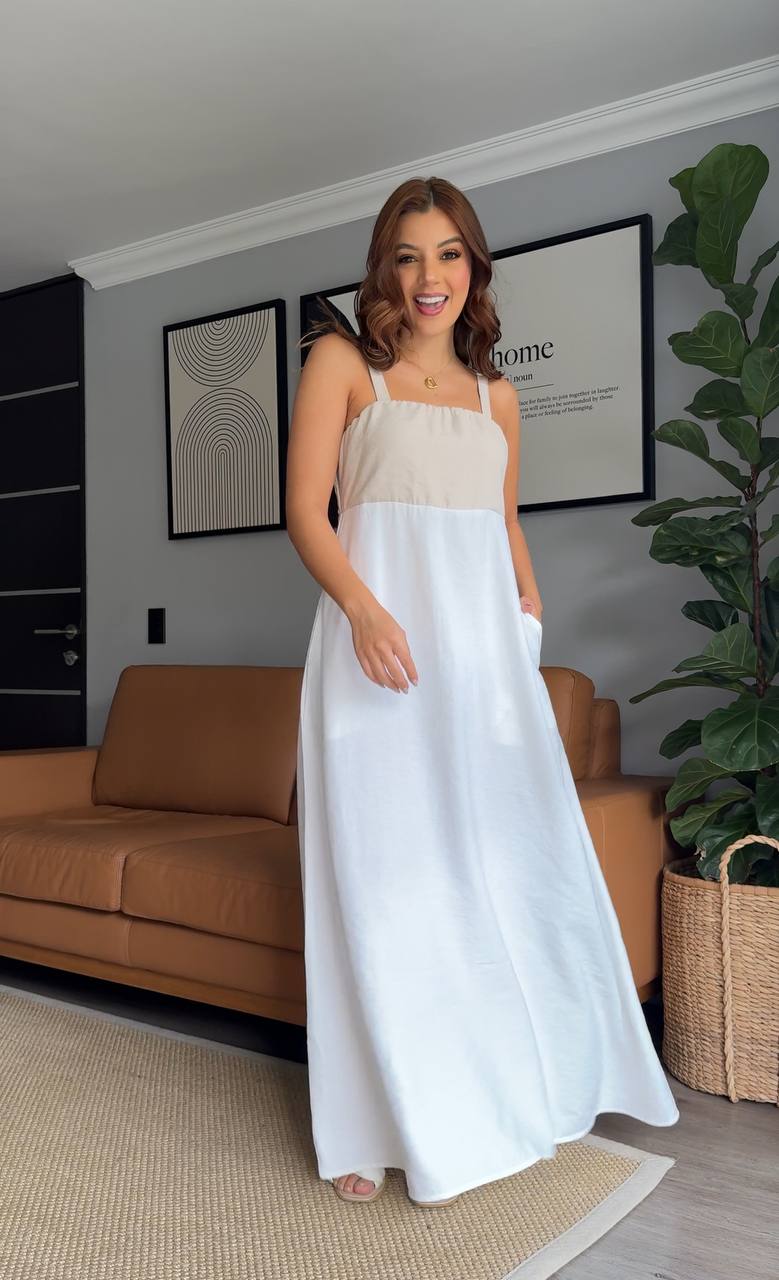 Vestido largo bi color con resorte en la espalda- Tela: mykonos- Tallas S-M- L